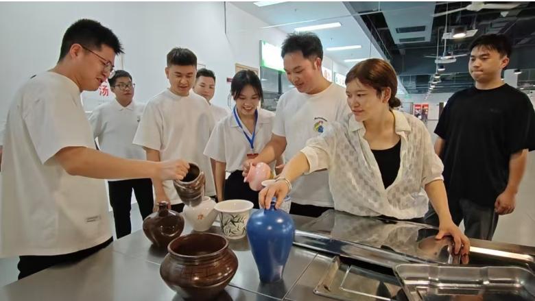 除此之外,黄沙的另外一项非遗文化项目“清水陶艺”也同步在院校食堂展出。这场“美食+文化”迎新活动,用地道风味为工职院的师生开启与黄沙的难忘初见。