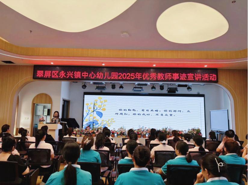 随后的优秀教师事迹宣讲环节,三位教师分享了动人故事。翠屏区永兴镇中心幼儿园王大琴老师将教师比作“孩童生命里的微光”,诠释教育温度;徐晶旭老师讲述柏园长扎根幼教、日夜坚守的点滴,彰显榜样担当;张雨老师分享与幼儿园的温情过往,传递对事业的赤诚。真实的细节与暖心的故事,不仅展现了幼教行业的坚守,更激励着全体同仁以爱为帆,守护童年。为激励教师深耕保教工作,活动现场对“优秀幼教模范”进行表彰。她们是幼儿成长的同行者与支持者,也为全体教师树立了“有温度、有专业”的学习标杆。