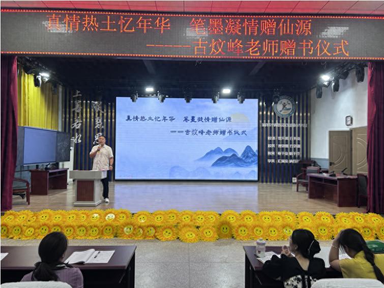 赠书仪式上,南溪区仙源小学校校长杨召云在致辞中深情解读了这两部作品的内涵,称其是古主席对教育热土的深情礼赞,更是对教师们的殷切嘱托,激励大家不忘初心、扎根课堂。