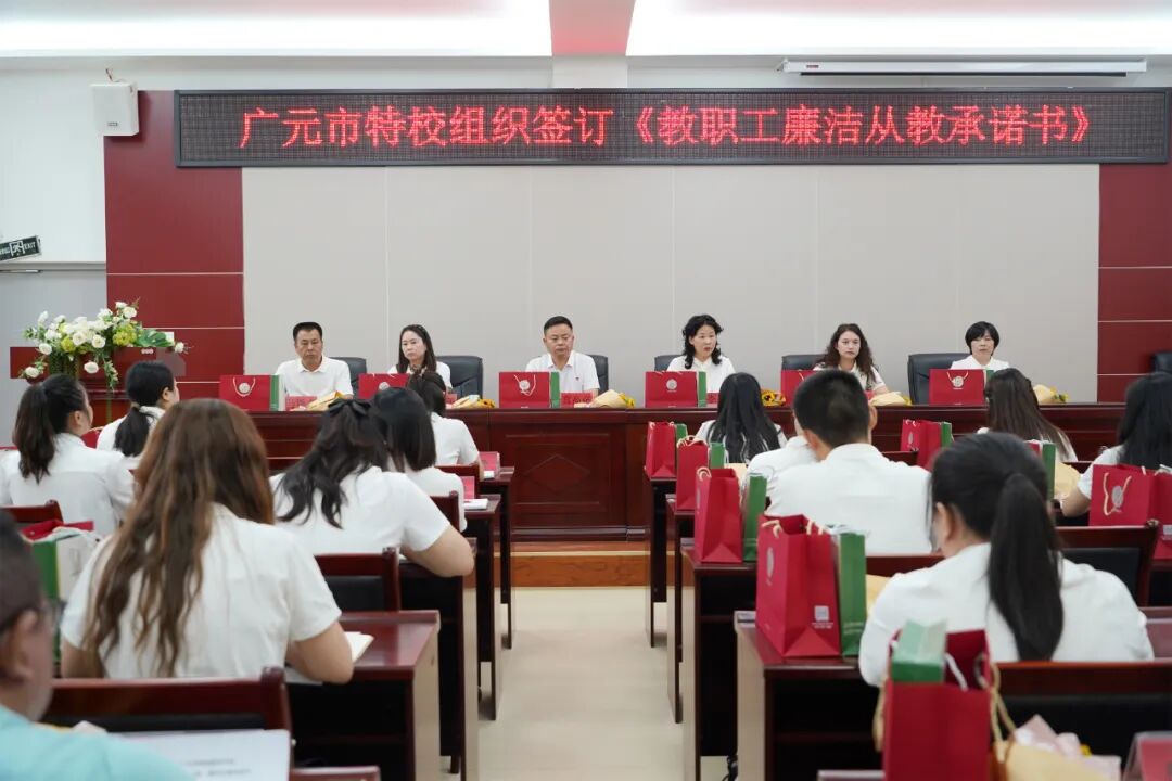 在第41个教师节来临之际,为弘扬尊师重教的风尚、筑牢教师廉洁从教的思想根基,9月10日,广元市特殊教育学校以“廉洁从教守初心,匠心育人担使命”为主题,隆重举行教师节座谈会。通过签订《廉洁从教承诺书》、集体宣誓等富有仪式感的活动,为全体特教教师送上了一份特殊而深刻的节日礼物,进一步凝聚起守护特殊儿童成长的教育力量。