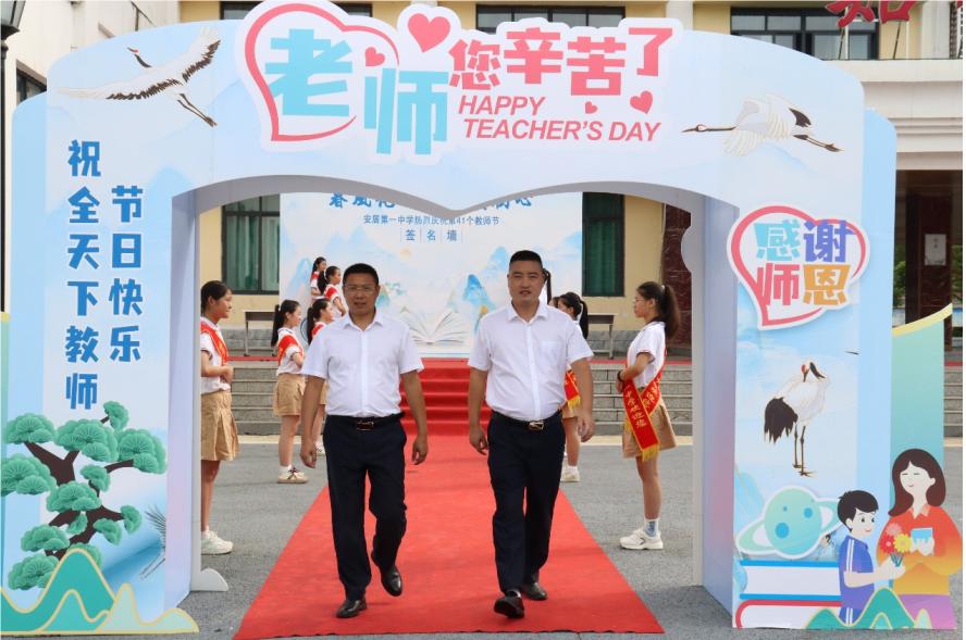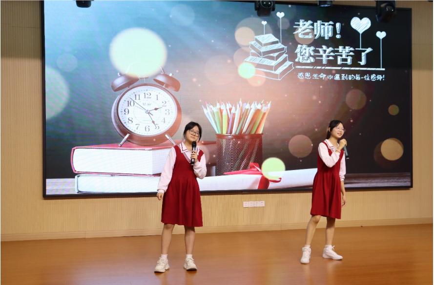 庆祝活动在温馨的入场欢迎仪式中拉开帷幕。老师们在礼仪队的引导下,在签名墙前拍照留念。入场仪式结束后,学生们献上了《老师啊老师》《如愿》等歌舞曲目,现场气氛欢快而热烈。