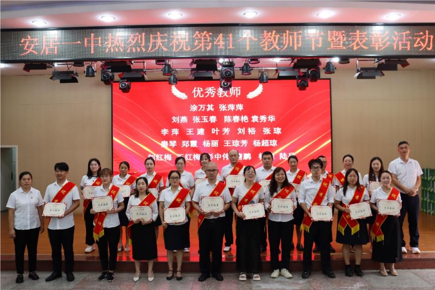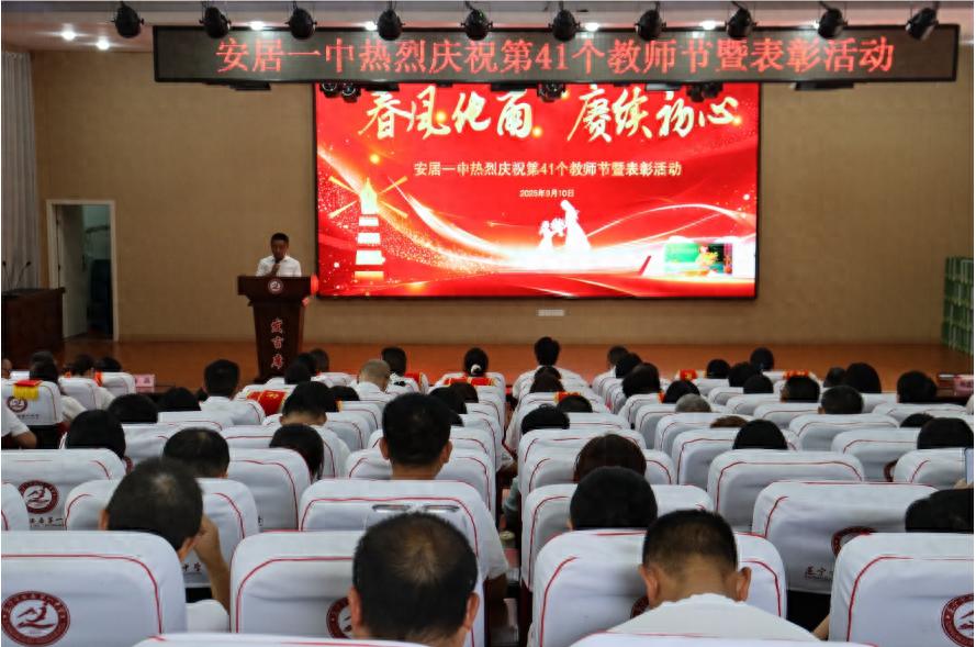 2025年9月10日,遂宁市安居第一中学全体教师齐聚一堂,共同庆祝第41个教师节暨表彰活动。
