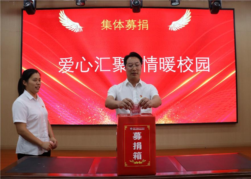 活动尾声,学校举行“爱心汇聚,情暖校园”捐款仪式。在学校党支部书记、校长刘波的带领下,全体教职工自觉列队、依次上前,将饱含关怀的善款郑重投入捐款箱。