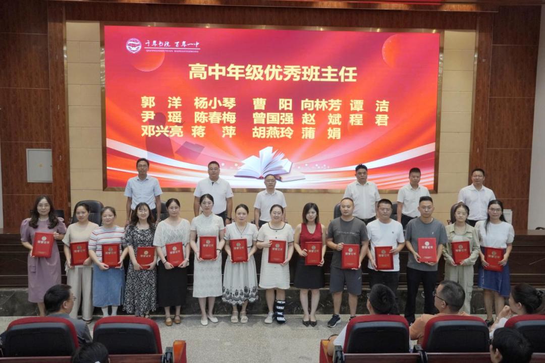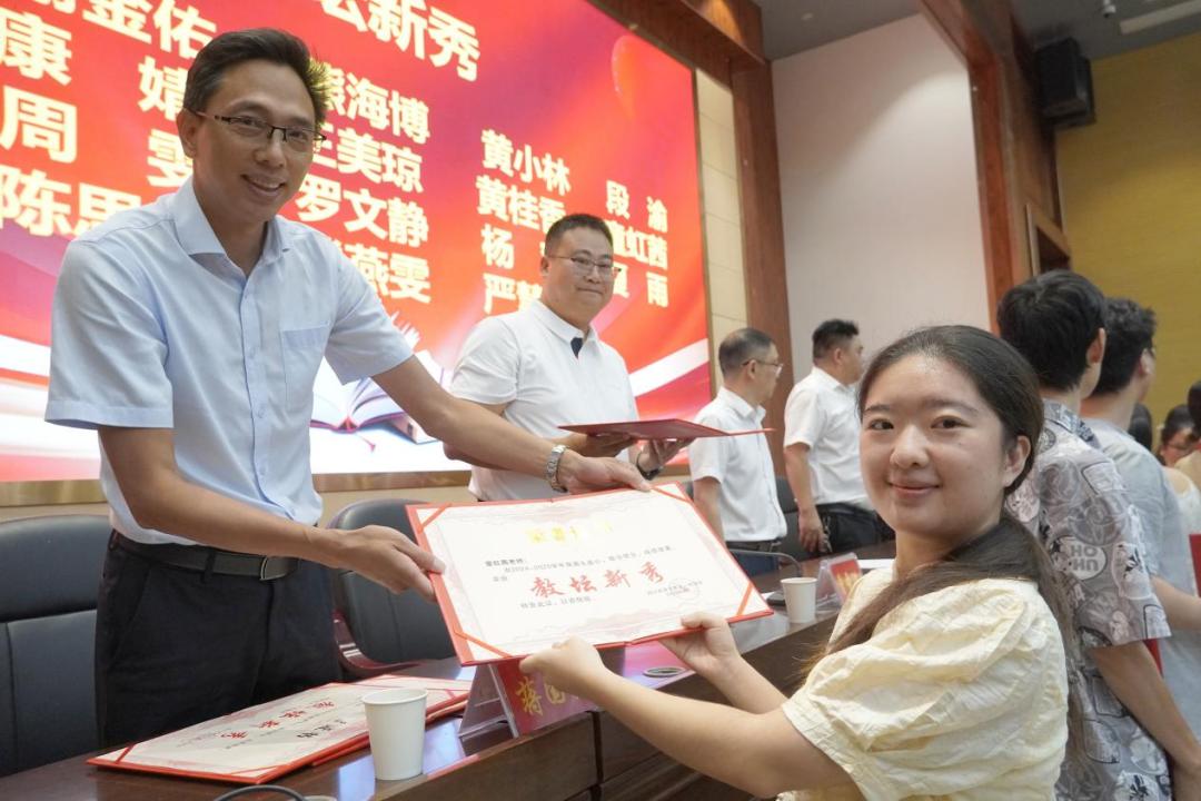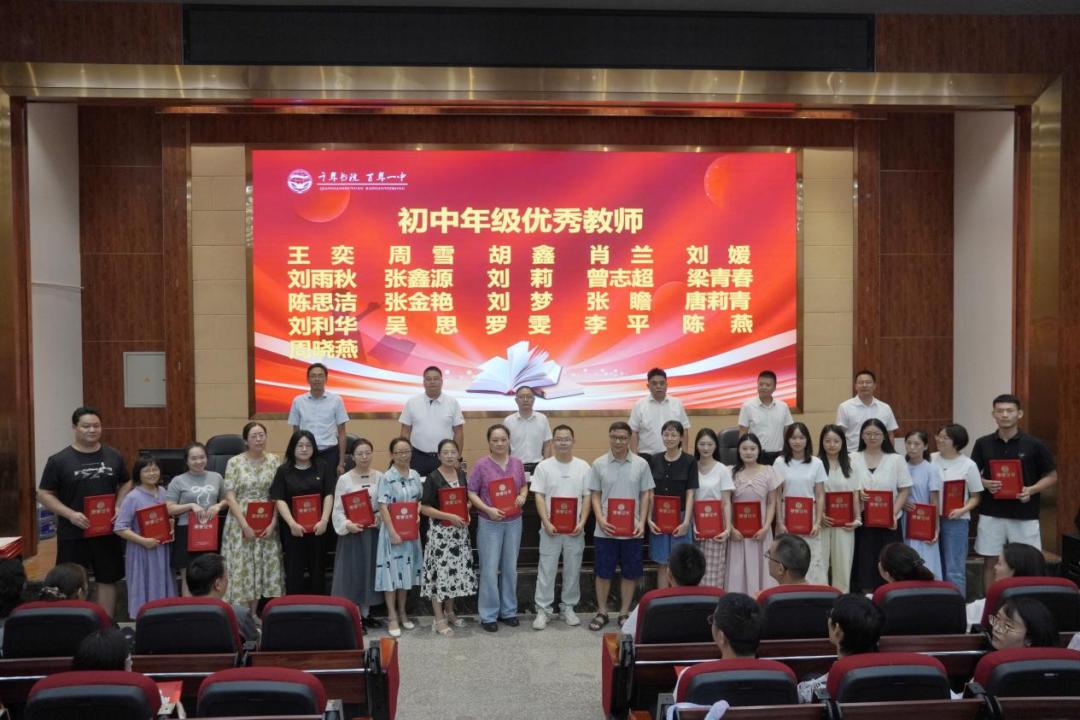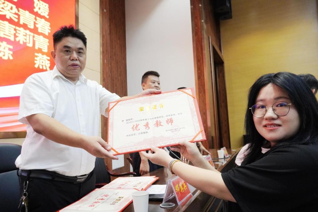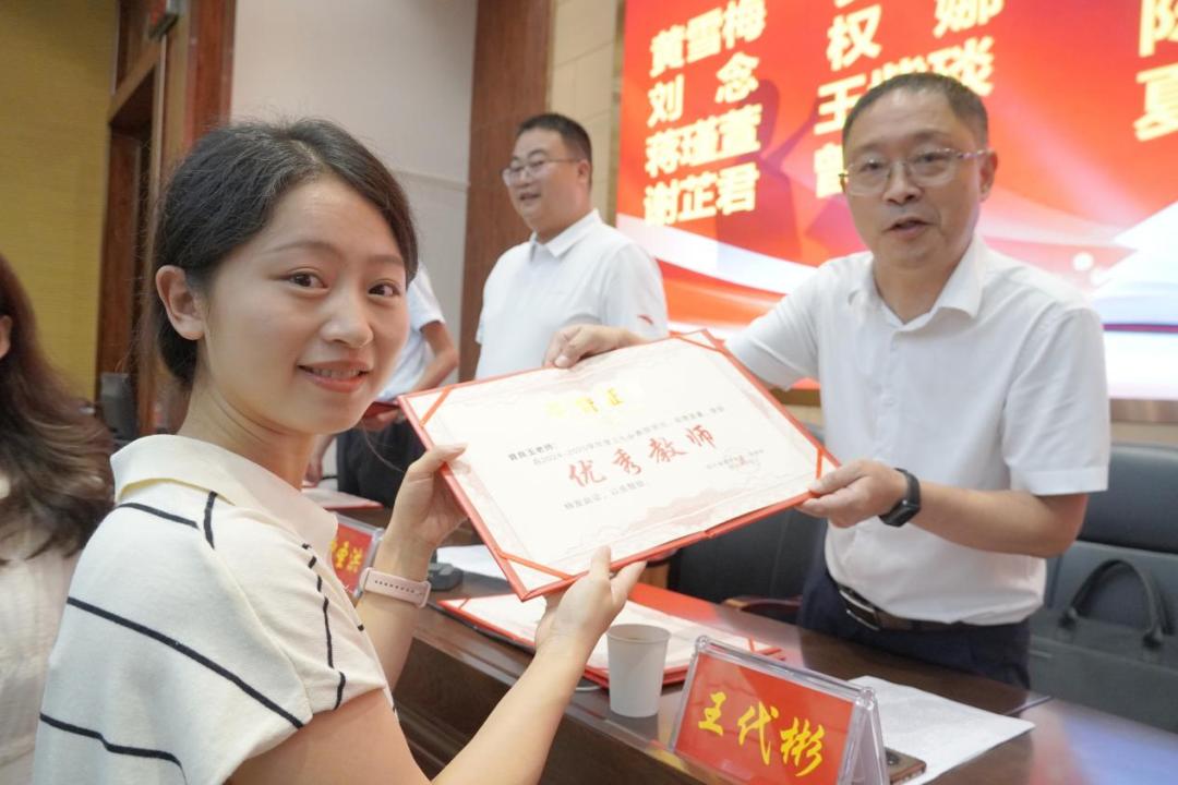 学校通过严谨、公正的评选,分别从教学管理、后勤服务等多个岗位,共评选出了“优秀班主任”“优秀教师”“优秀教育工作者”“教坛新秀”共104名。会上,学校党委委员、副校长、工会主席、初中校区负责人邓建宣读了学校的表彰文件,获奖教师怀着无比激动之情走上前台,接受学校的隆重表彰。学校校级领导依次为获奖教师颁奖并合影留念。