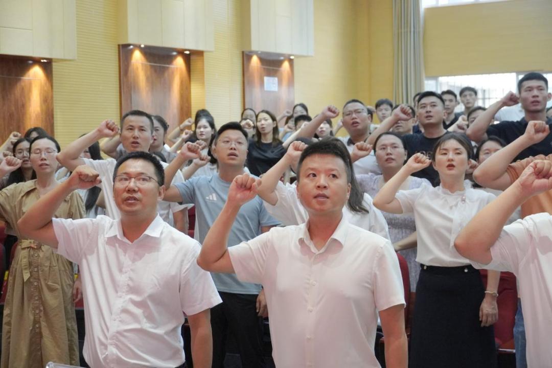最后,在全体班子成员的引领下,与会教职工进行了庄严的集体宣誓。铮铮誓言,掷地有声,每一个字都饱含着全体一中人对教育事业的忠诚与热爱,每一句话都彰显着为学生成长、为学校发展、为教育强国贡献力量的坚定决心。