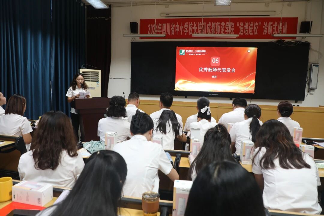 荣誉的背后,是无数个日夜的坚守与付出。优秀教师代表黄莉老师上台发言,她结合自己多年的教学经历,分享了对教育事业的理解与感悟。“教育不是单向的灌输,而是一场双向奔赴的旅程。我们用知识浇灌学生的成长,学生也用他们的纯真与进步治愈我们的疲惫。”黄老师表示,作为教师,要始终保持对教育事业的热爱,以严谨的态度对待每一堂课,以温暖的关怀对待每一个学生,努力成为有理想信念、有道德情操、有扎实学识、有仁爱之心的“四有”好老师。她的发言朴实无华却情真意切,道出了全体教师的共同心声,引发了在场教师的强烈共鸣。