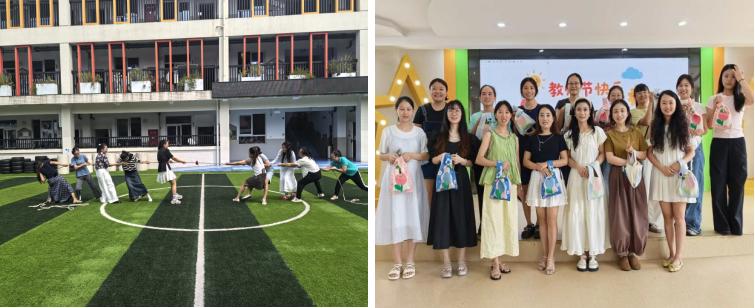 高县罗场镇幼儿园工会特别策划了轻松愉快的团建活动。拔河比赛、跳绳、拍球等趣味游戏,老师们全情投入,欢声笑语不断,在轻松愉快的氛围中放松了身心,增进了彼此间的默契与情谊。该园工会为老师们准备了小奖品,表达对老师们平日辛勤工作的慰问与感谢。
