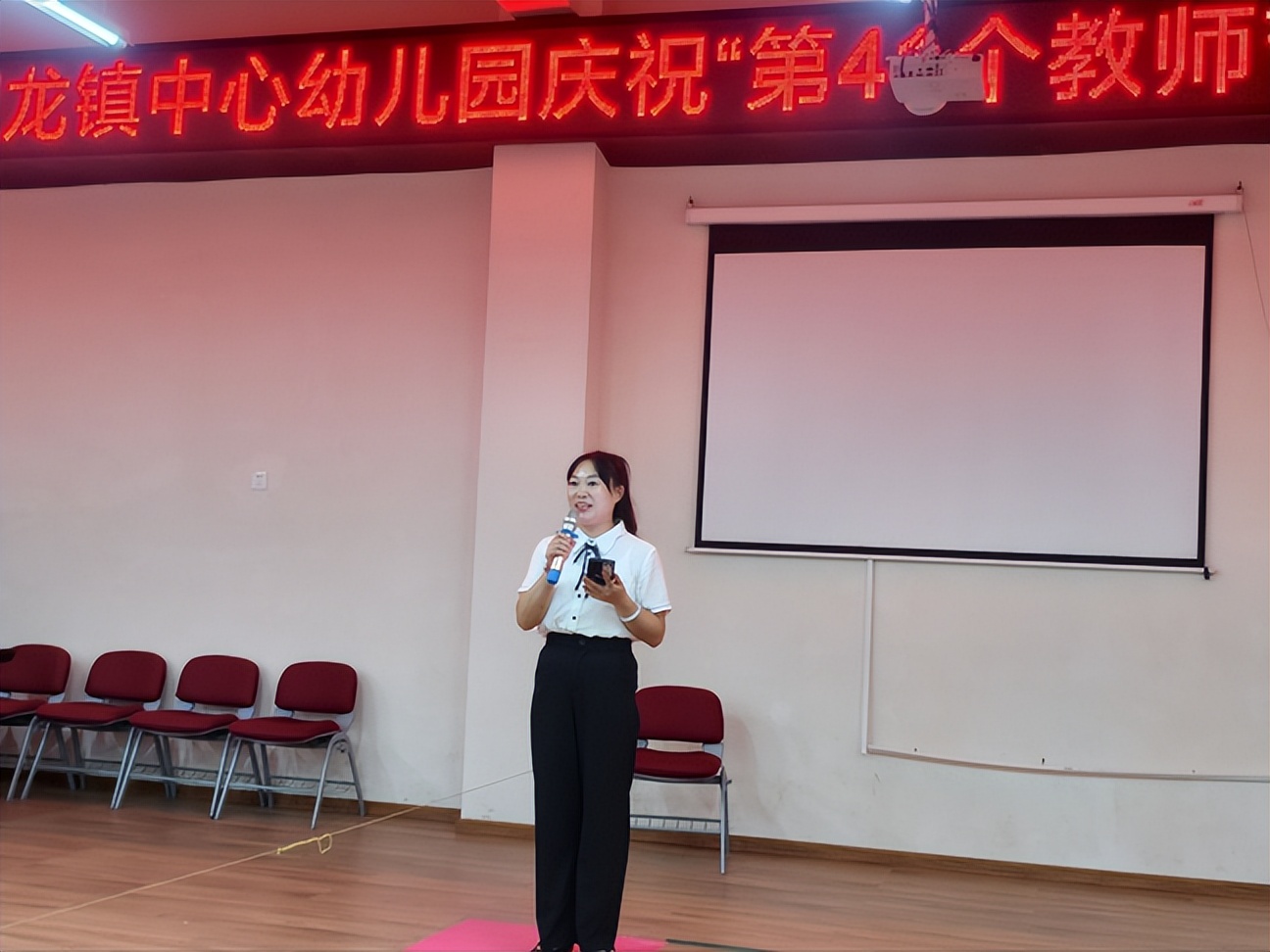 活动开始,叙州区双龙镇中心幼儿园副园长李小芳为全体教师送上教师节节日祝福,并以师者为范,终身为师,争做一名优秀的幼儿教师展开致辞,致辞结束后,对在教育教学工作中表现突出的优秀教师进行表彰,并表达了最高的敬意和肯定。