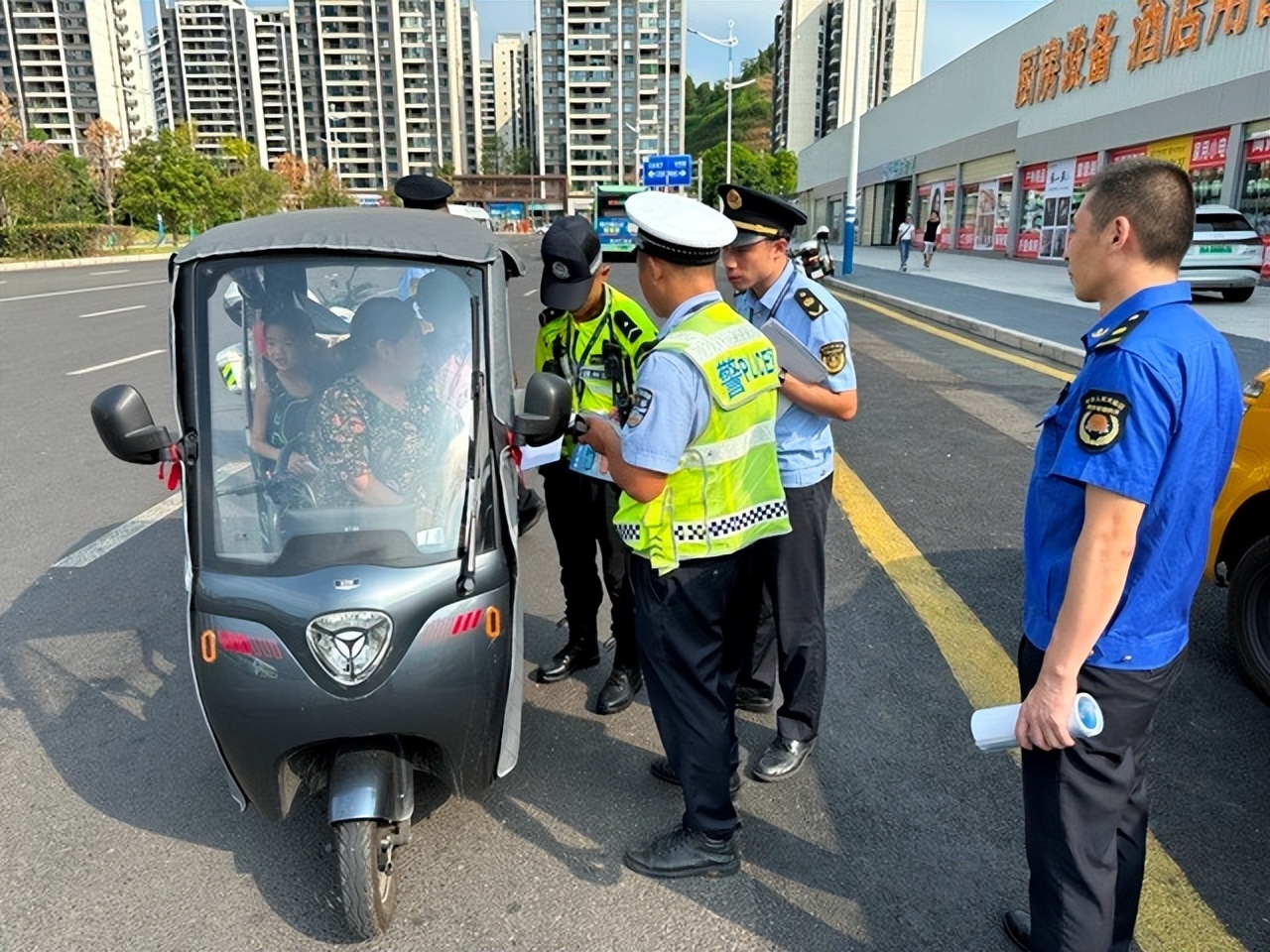 执法过程中,对电动三(四)轮车违法载人、闯红灯、走禁行及逆向行驶、无证驾驶等交通违法行为,依法予以罚款、记分等处罚;针对无牌、擅自非法改装和达到报废车车辆,一律采取暂扣措施,并督促车主尽快办理相关手续,规范车辆上路资格。并且,执勤民(辅)警在查处违法行为时,面对面告知电动车主无牌无证、非法改拼装、不戴安全头盔等行为的危害,普及电动三(四)轮车相关管理规定及安全出行知识,引导市民自觉遵守交通法规,摒弃交通陋习,抵制不文明交通行为。