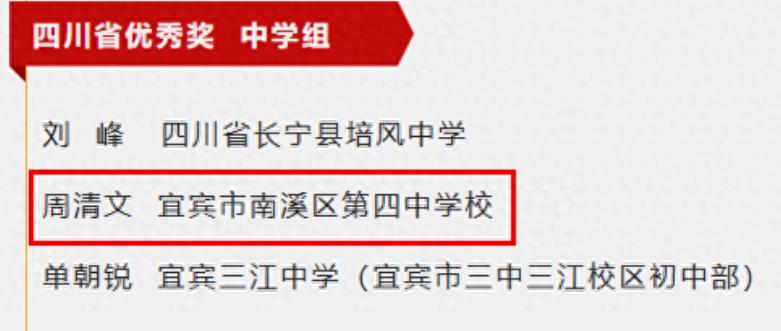 特向周清文老师及全校师生报喜!谨致热烈祝贺!南溪四中教师将以此为榜样,锤炼本领,闪耀风采,为学校高质量发展和川渝教育协作贡献更大力量!(邓中莲 来源:宜宾市南溪区第四中学校)