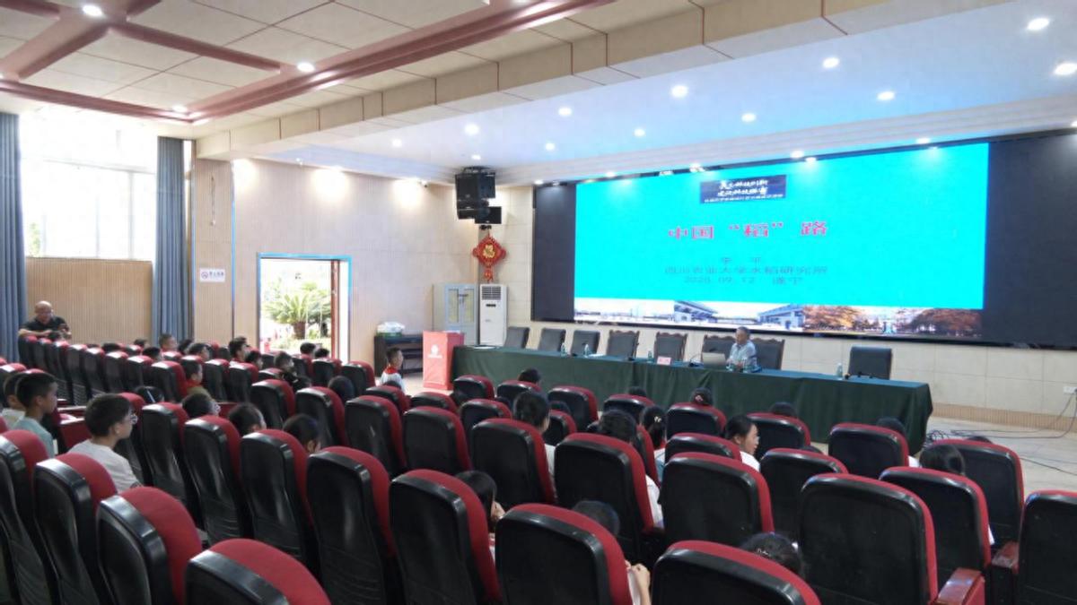 在安居一小的行知堂里,曾任水稻研究所所长、现执教于四川农业大学的知名教授李平为师生们带来了题为《中国“稻”路》的精彩讲座。李教授深情回顾了我国杂交水稻研究从无到有、从弱到强的艰辛探索历程,生动讲述了科研工作者们克服重重困难、勇攀科学高峰的感人事迹,并展示了我国在该领域取得的举世瞩目的辉煌成就。