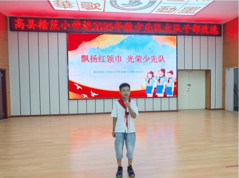 为保障学校少先队工作高效有序推进,深化组织自主管理与民主建设,切实培养少先队员的民主参与意识、服务奉献精神及主人翁责任感,进一步夯实少先队组织基础,2025年9月13日下午,高县翰笙小学校开展了以“飘扬红领巾,光荣少先队”为主题的新一届大队委竞选活动。活动由校本部辅导员刘殿秋老师主持。