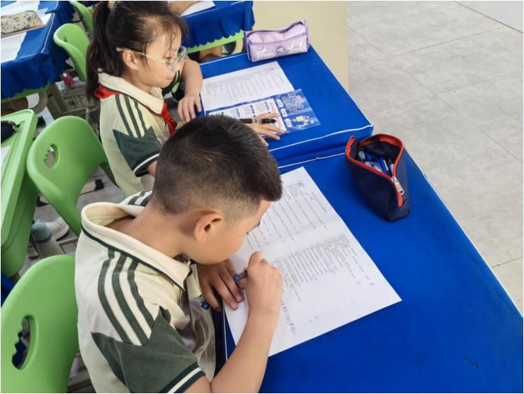 为了检验同学们的学习效果,进一步巩固反诈骗知识。活动最后,民警们还联合南溪区福临小学校组织了一场反诈骗知识测试。测试卷内容紧密围绕此次宣讲的重点,涵盖了常见诈骗类型识别、防范措施、求助方式等方面,题型分为选择题、判断题和简答题,既能考察同学们对基础知识的掌握程度,也能检验学生的实际应用能力。
