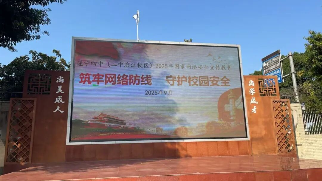 2025年9月15日至21日是国家网络安全宣传周,今年的活动主题为“网络安全为人民,网络安全靠人民——以高水平安全守护高质量发展”。为响应国家号召,增强全校师生的网络安全意识,遂宁四中(二中滨江校区)精心组织开展了网络安全思政大课堂系列活动,通过多种形式引导师生共同筑牢网络安全防线。