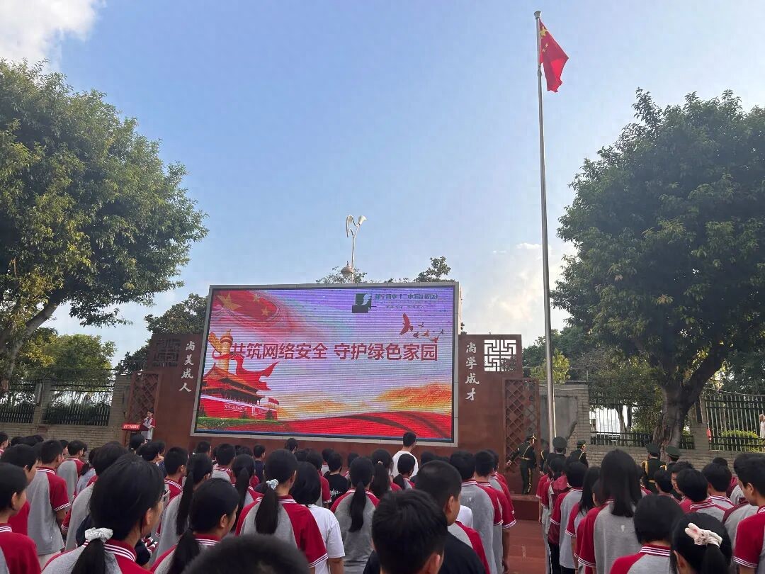 9月15日,“共筑网络安全,守护绿色家园”主题升旗仪式在学校操场隆重举行。