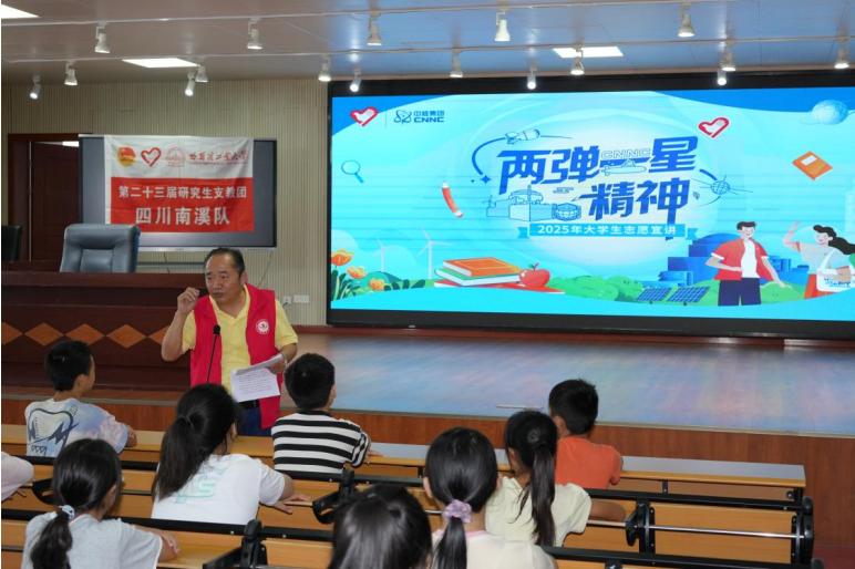 2025年9月12日,哈尔滨工业大学研支团与南溪区老年志愿者协会携手,在南溪区桂溪初级中学校学术报告厅开展了“两弹一星精神”主题宣讲,为学子们带来兼具知识深度与精神温度的思想盛宴。