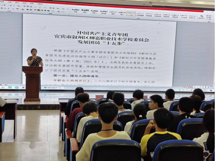 叙州区柳嘉职业技术学校团委书记袁玲就发展团员必须严格遵循的“入团十五步”流程作了详细解读,为学员们指明了今后的努力方向和具体行动指南。