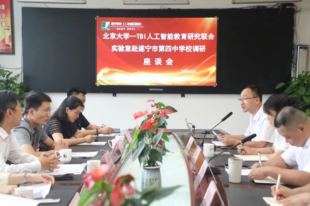 此次北京大学—TBI人工智能教育研究联合实验室赴遂宁四中的调研,为学校人工智能教育建设搭建了高端智库平台,带来了前沿理念与专业指导。通过政策解读、学术分享、交流研讨,学校在人工智能教育的规划与实施上获得了新的思路,也为人工智能技术赋能基础教育教学、推动教育数字化转型搭建了校所合作的桥梁,促进了前沿教育理念与基层教学实践的深度融合,为人工智能在基础教育领域的创新应用开辟了新视野,助力遂宁四中在人工智能教育领域迈出新步伐,为培养适应AI时代的创新型人才积蓄力量。(来源:遂宁四中 图/ 刘兆蓉 、夏姝玲 文 /邓玉婵)