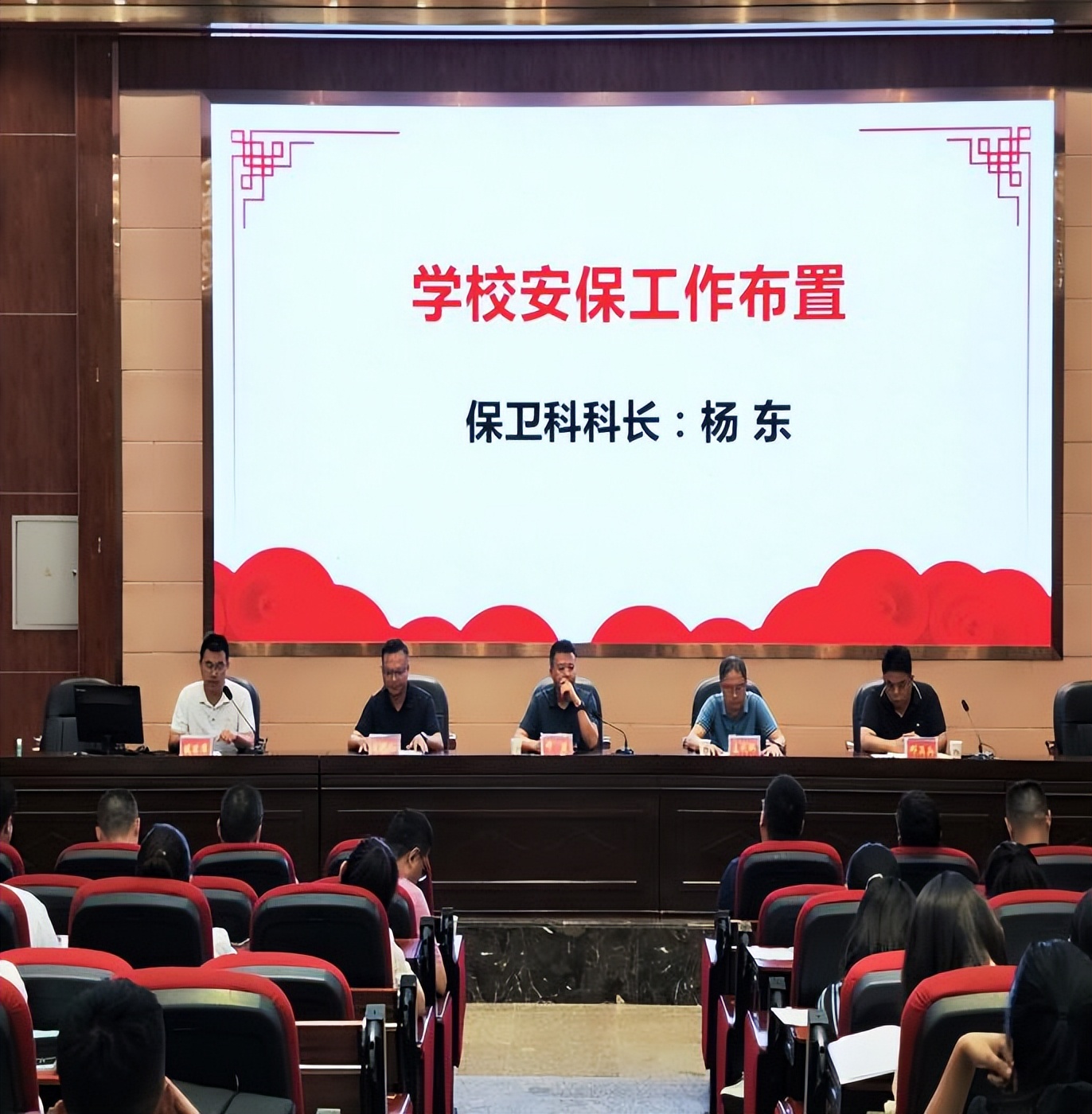 保卫科科长杨东围绕食品及就餐安全、劳动安全、体育安全、交通安全、防溺水教育、防校园欺凌这几个方面展开论述。希望各位教师以高度的责任感,将交通安全、防溺水、防欺凌等各项安全教育和管理措施做实、做细、做到位,充分发挥班级安全员的“前哨”作用,共同构建一个让学生安心、家长放心、社会满意的平安和谐校园。