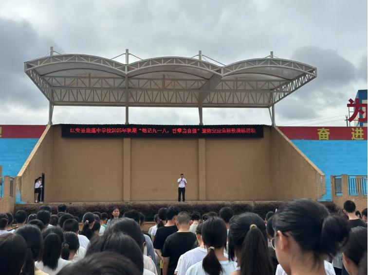 江安县底蓬中学校党支部副书记李文辉将结合历史与当下,为师生阐释“铭记九一八”的时代意义。该校教师代表陈青连带领全校师生庄严宣誓,用铿锵誓言立下“铭记历史,传承红色精神;坚定理想信念,胸怀爱国之志”的坚定决心,让责任与担当扎根心中。