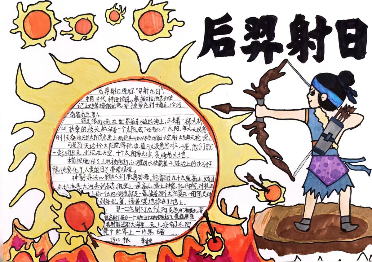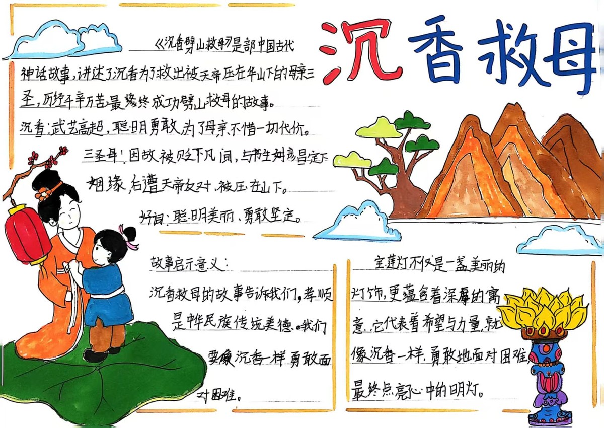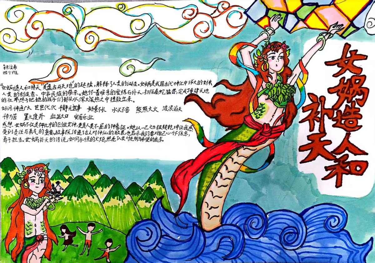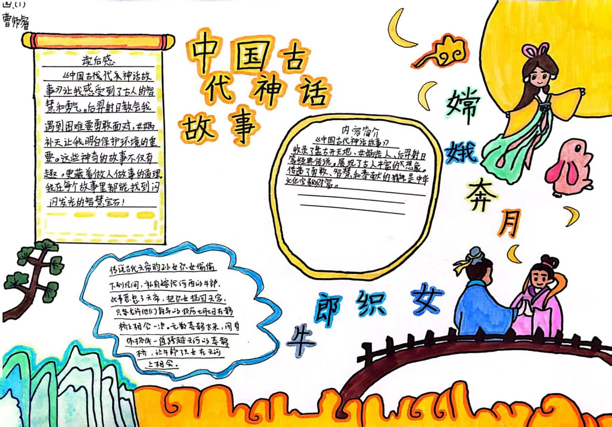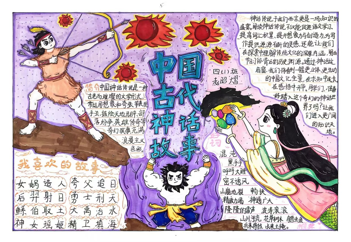 一张张手抄报主题鲜明、创意十足,不仅展现了孩子们的绘画与排版能力,更承载着他们对中国神话的独特感悟。