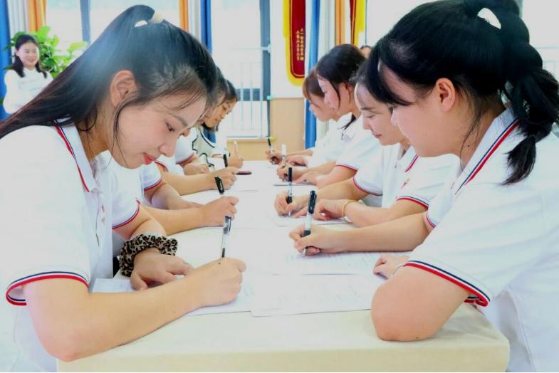 结对师徒在《青蓝结对协议书》上郑重签名,一纸协议,联结的是师徒间的责任与信任。