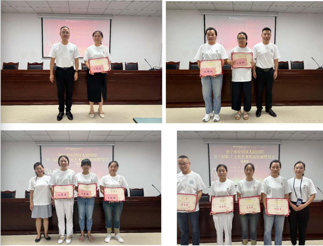 为丰富医院职工文化生活,增强团队凝聚力,营造积极向上的医院文化氛围,推动医院文化建设走深走实,传播安医声音,讲好安医故事,近日,遂宁市安居区人民医院工会在行政楼三楼学术厅举办“医艺共美,美在仁心”第六届职工艺术展颁奖典礼。