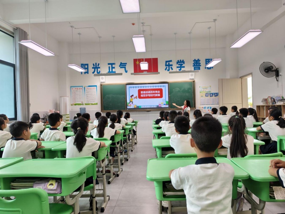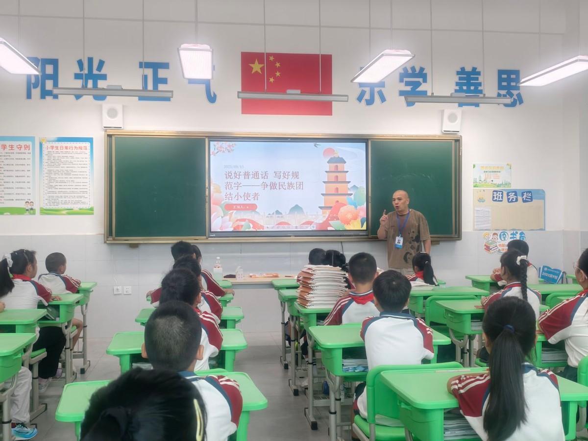 南溪区福临小学校各班级开展了内容充实、形式活泼的主题班会。老师们通过经典诵读、趣味绕口令、情景对话等活动,引导学生感受普通话的音韵之美。中高年级同学积极参与“我是推普小使者”征文和绘画创作,用笔尖书写规范汉字,用色彩描绘语言之美,表达对中华文化的热爱与自信。
