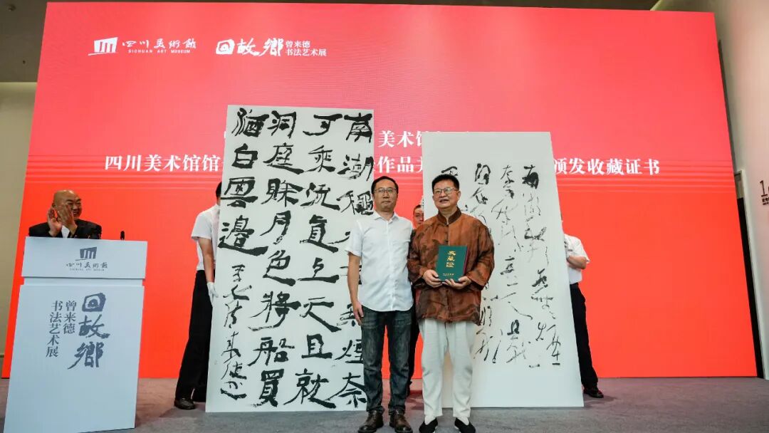 四川美术馆馆长吴晓东接受作品并向曾来德先生颁发收藏证书