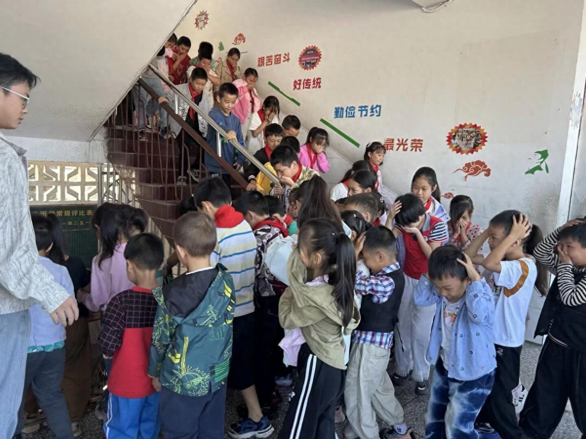 随着警报声响起,演练正式开始。江安县留耕镇中心小学校中心本部、周坝校区、三块校区的师生们迅速反应,按照预定的疏散路线,有序、快速地撤离。学生们有的用衣物捂住口鼻,有的双手护住头部,在老师的引导下,紧张而不慌乱地向安全区域集结。整个疏散过程组织严密、秩序井然,各校区均在规定时间内完成了人员疏散任务。