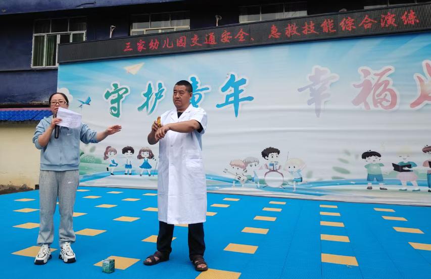 在急救技能演练环节,幼儿园保健员现场演示了摔倒后的自我保护动作、简单伤口处理流程以及应对异物卡喉的海姆立克急救法基本要领。孩子们在教师引导下学习如何正确求助,并了解基础急救步骤,如清洗伤口、消毒包扎等,现场互动积极,反响热烈。