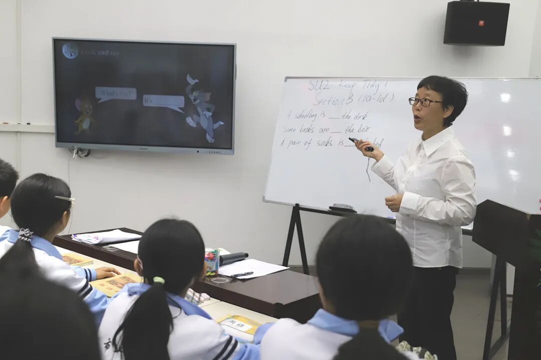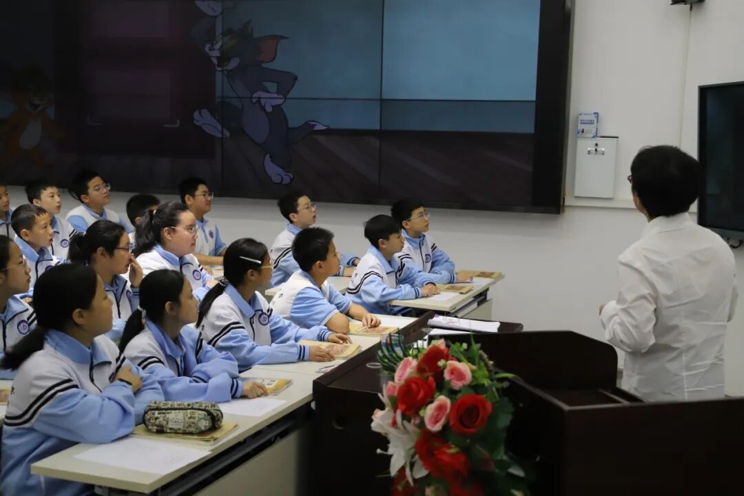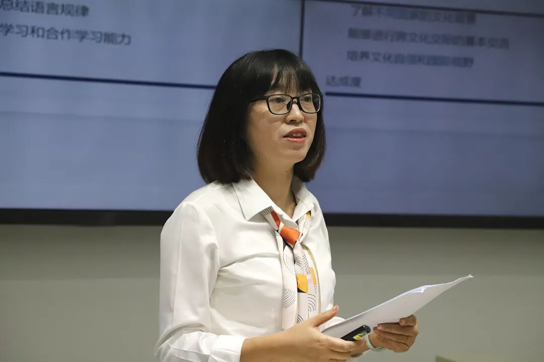杨冬芳老师对上课环节进行点评,肯定了课堂对英语学科素养的体现以及课中丰富的资源与活动,如运用AI、英文歌曲等。同时,针对量化表使用、教材处理、课堂细节等方面给出建议,为优化课堂教学提供了思路。