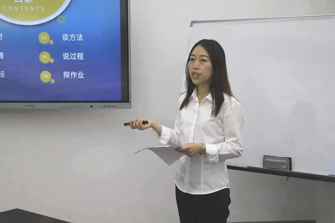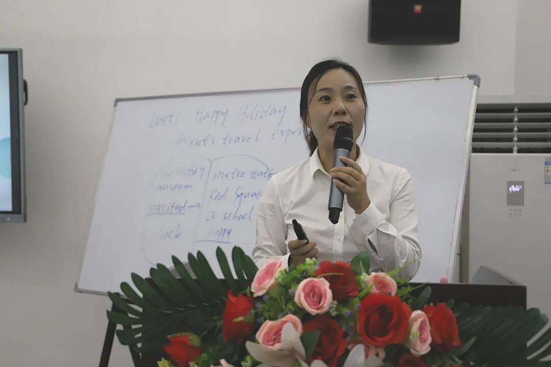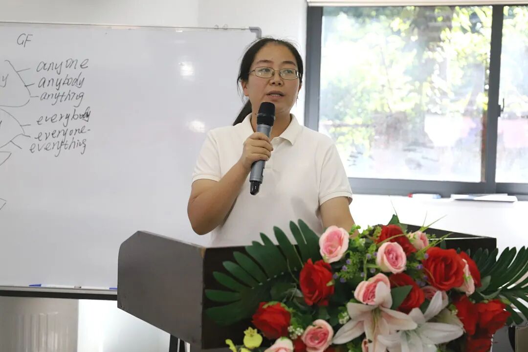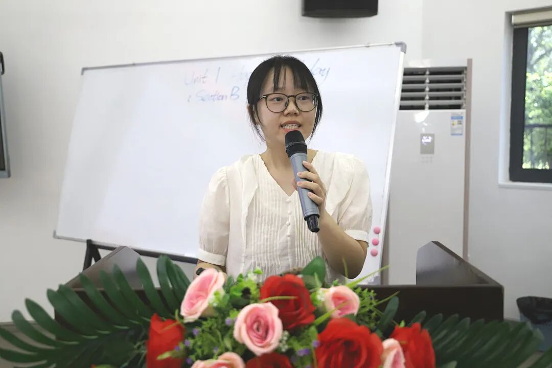 陶惠老师宣读比赛结果并作总结发言,她高度评价参赛教师的专业表现,对各位教师在有限时间内展现出的扎实教学功底、创新教学设计和高效课堂实施能力表示充分肯定,更呼吁老师们摒弃经验主义,以空杯心态吸纳新的教学理念,为英语教学注入新活力。