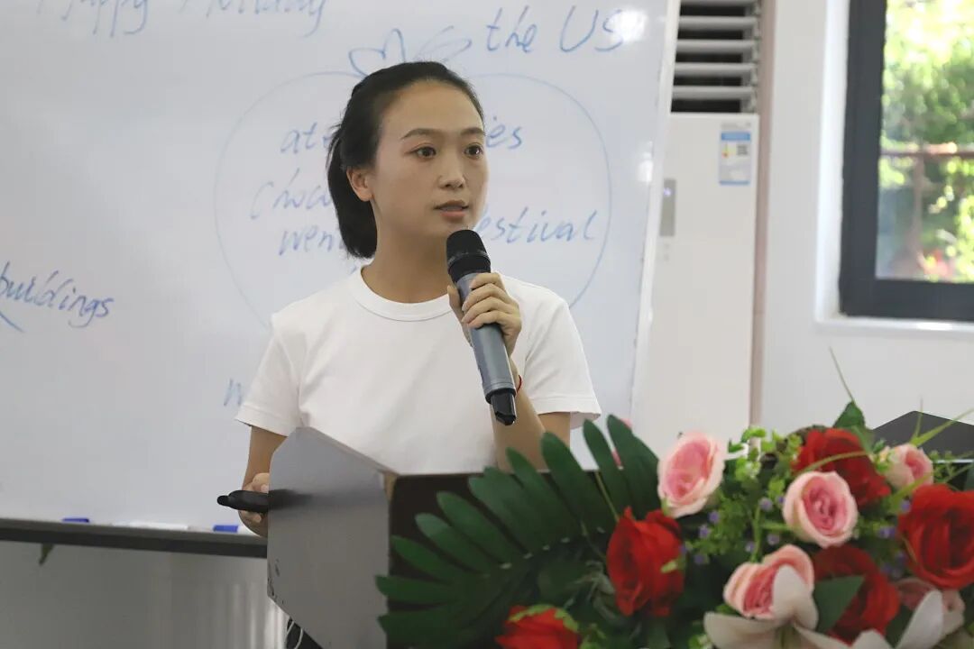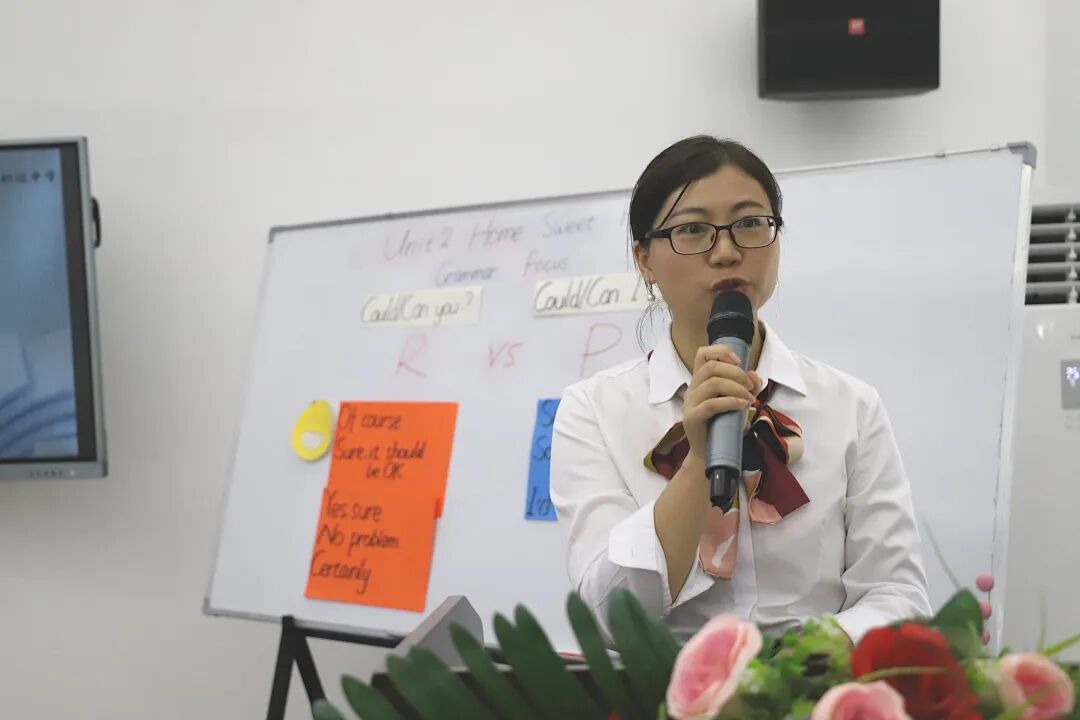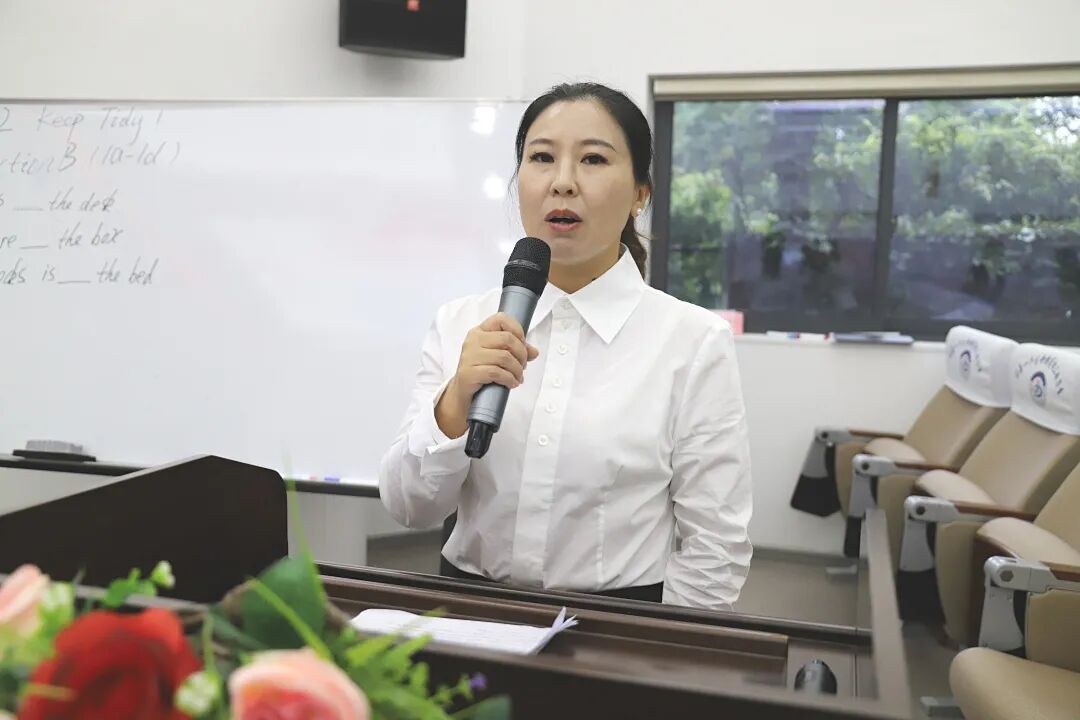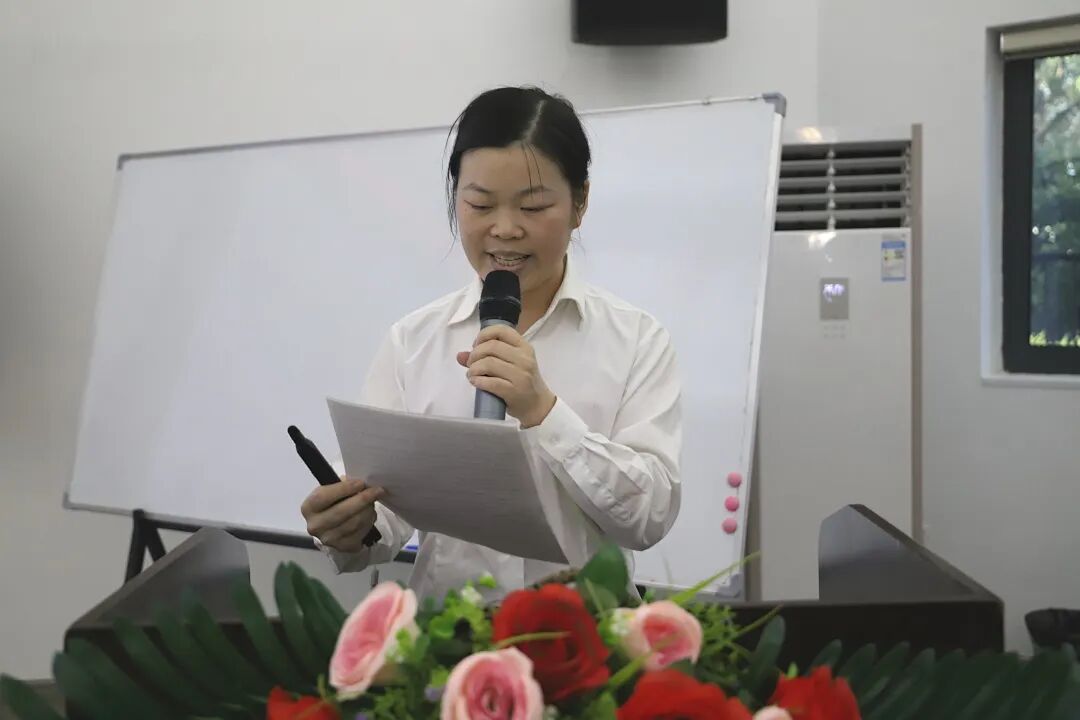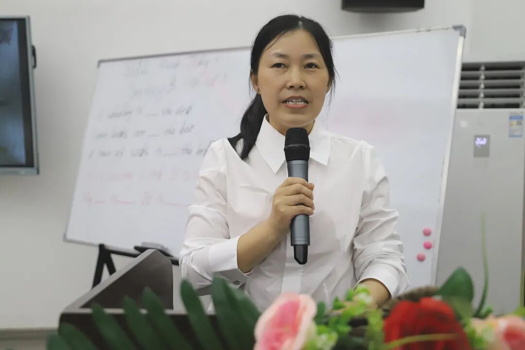 陶惠老师宣读比赛结果并作总结发言,她高度评价参赛教师的专业表现,对各位教师在有限时间内展现出的扎实教学功底、创新教学设计和高效课堂实施能力表示充分肯定,更呼吁老师们摒弃经验主义,以空杯心态吸纳新的教学理念,为英语教学注入新活力。