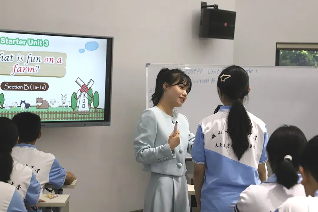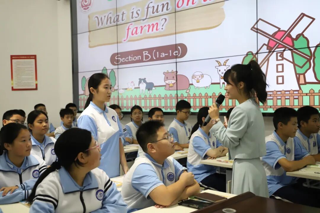 第二团队执教七年级《Starter Unit 3 Welcome!》,紧扣“What is fun in a yard?”情境,通过农场动植物问答情境引导学生开展语言实践,有效激发学生学习兴趣。
