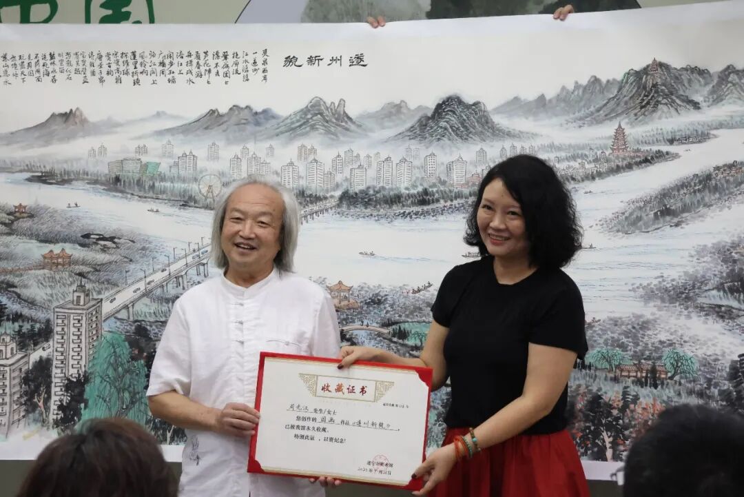 开幕仪式上,周光汉向遂宁市美术馆捐赠其创作的画作《遂州新貌》。