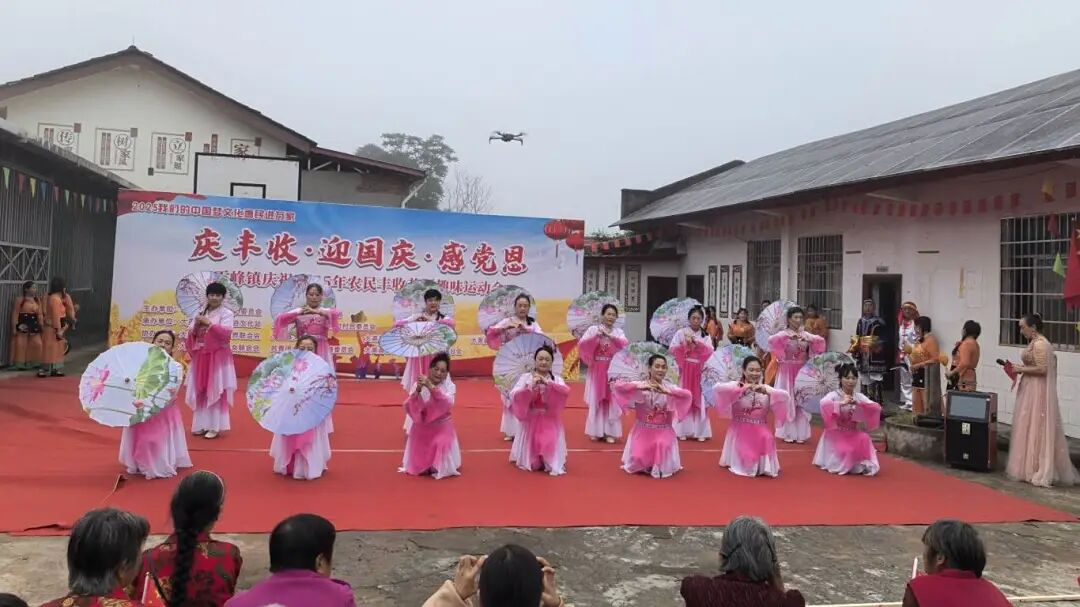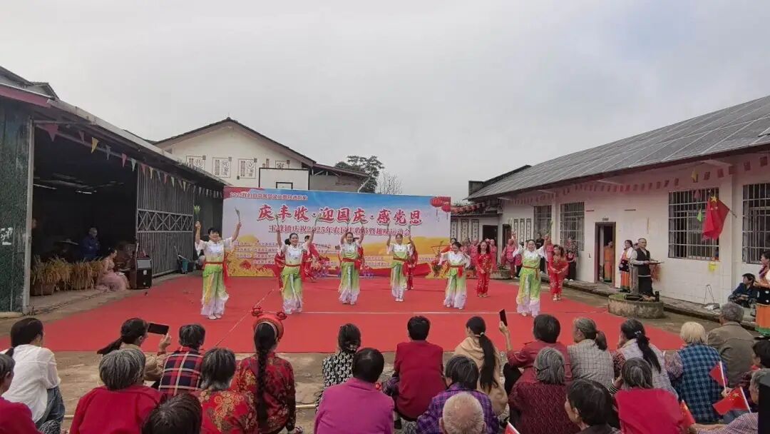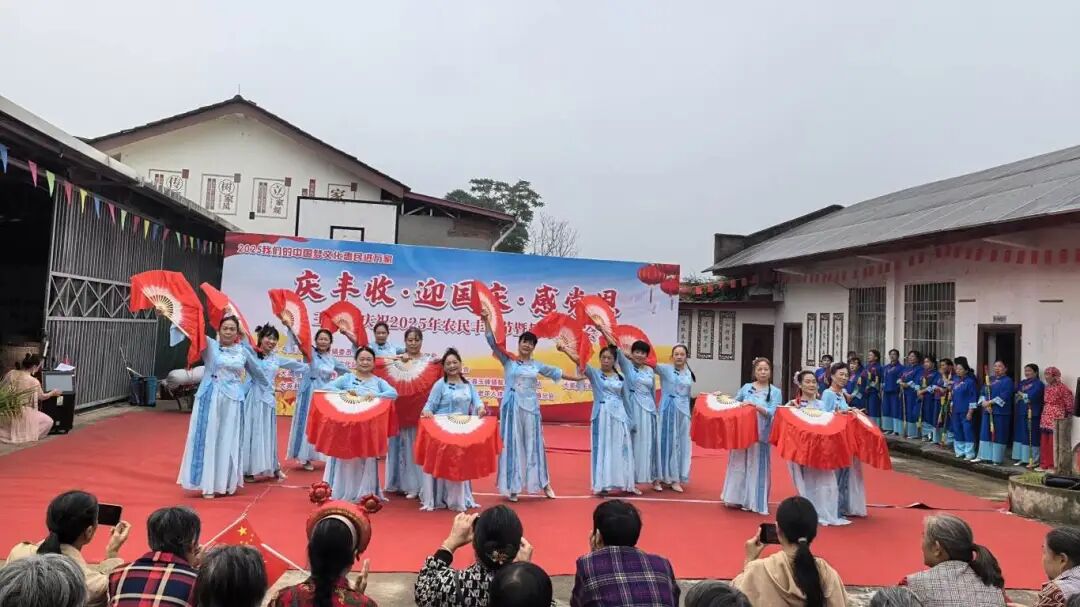 活动在歌曲《和谐中国》的悠扬旋律中拉开帷幕。文艺志愿者以饱满的热情唱响家国情怀,也唱出了村民对美好生活的向往。由大家自编自演的《庆丰收》走秀节目一登场便引发阵阵欢呼。大家身着融入农耕元素的特色服饰、配带各样式的生产农具,精心设计了播种、插秧等情景化动作,再现了大家的日常生产场景,也将田间地头的丰收景象 “搬” 到了舞台上,让大家沉浸式感受丰收的喜悦。