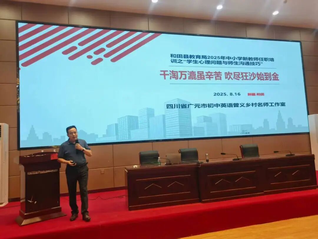 但他从未将研究成果锁在抽屉里。2024年5月,他为旺苍县骨干教师做了《用专业力量引领班级管理》的讲座;2025年8月16日,他为新疆和田320余名新教师作了《学生心理问题与师生沟通技巧》的专题讲座;同年8月在苍溪县中小学校(园)长党性淬炼培训班上,他又分享了《“以人为本”的教育思考》。