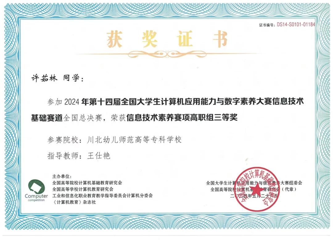 ●获“第十四届全国大学生计算机应用能力与数字素养大赛国家级高职组三等奖”