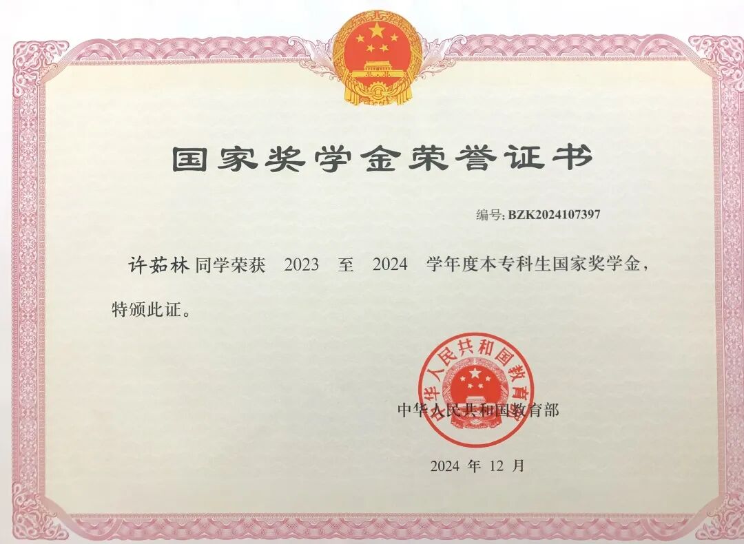 ●获“国家奖学金”