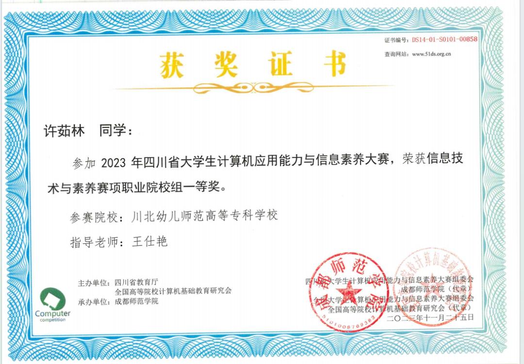 ●获“四川省大学生计算机应用能力与信息素养大赛省级高职组一等奖”