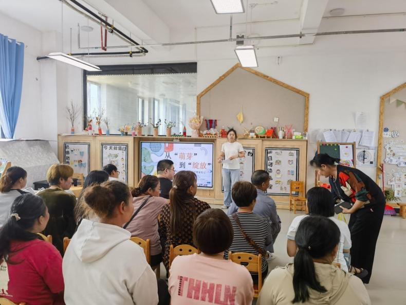 下午的中小班组家长会上,陈蔺柱主任调整内容重点,聚焦低龄幼儿的游戏化教学:“小班以‘适应集体生活’为核心,通过‘娃娃家’‘建构区’等游戏帮助孩子熟悉环境、学会分享;中班侧重‘感官探索’,新增‘自然角种植’‘声音实验室’等区域,让孩子在观察植物生长、听辨不同声响中培养观察力与好奇心。”他举例:“比如小班的‘喂娃娃吃饭’游戏,既能锻炼手部精细动作,又能渗透‘不挑食’的习惯;中班的‘彩虹糖溶解’小实验,能让孩子在玩水中感知溶解现象,这都是孩子能理解的‘科学启蒙’。”