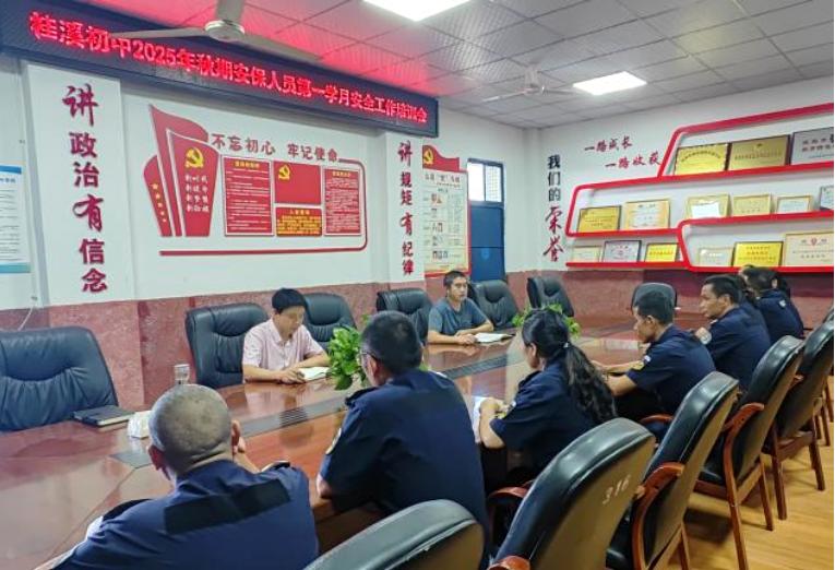 为强化校园安全管理,提升安保人员责任意识、防范技能与应急处置能力,筑牢新学期校园安全防线,9月24日,宜宾市南溪区桂溪初级中学校召开了2025年秋期第一学月安保人员安全工作培训会,学校分管安全副校长郭邦权、安保处及全体安保队员参会。