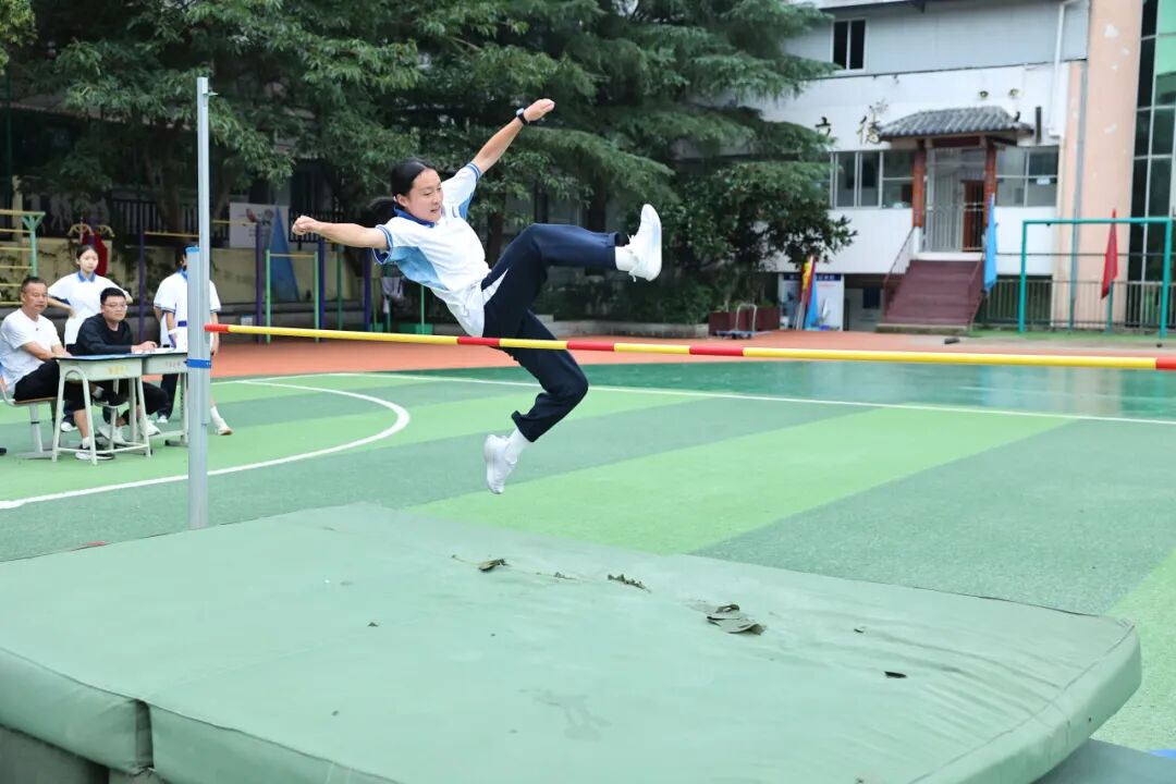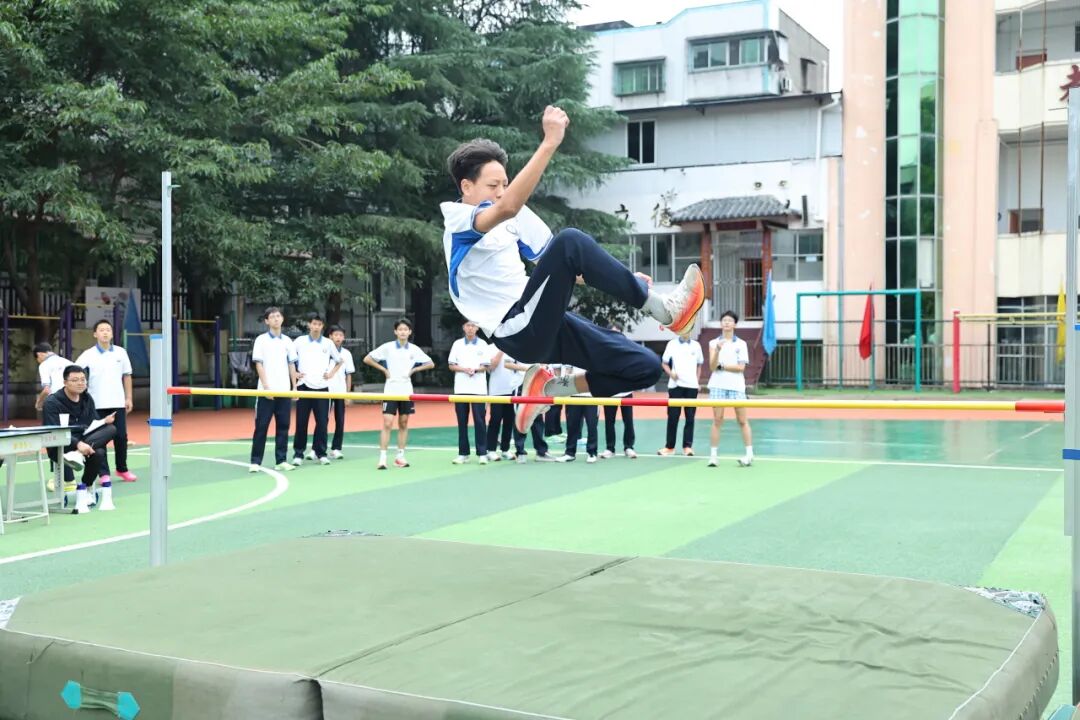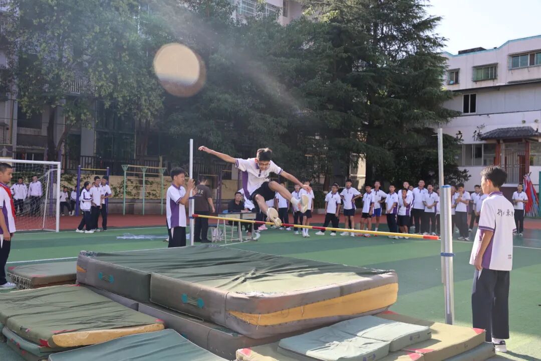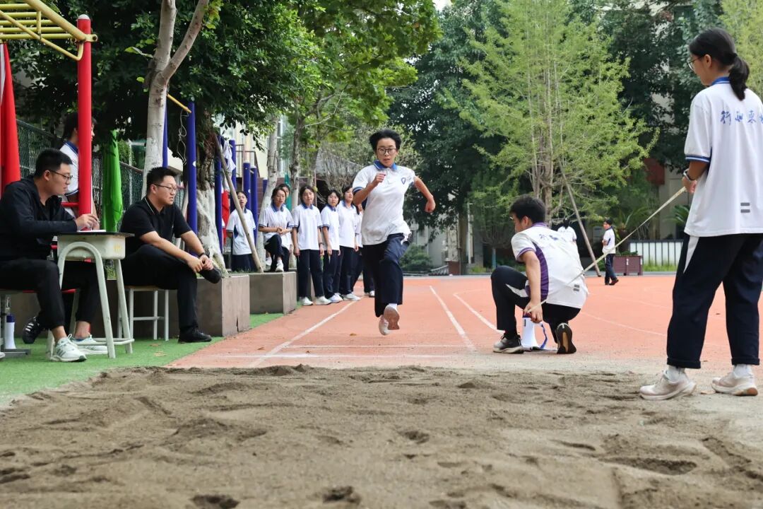 田赛场地同样精彩不断。跳远选手助跑、起跳、落地,每一个动作都凝聚着平日的训练汗水,沙坑中留下的深深印记,是他们努力的见证;投掷项目中,铅球、实心球在空中划出优美的弧线,选手们紧握器械,全力投掷,用力量展现青春的激情。