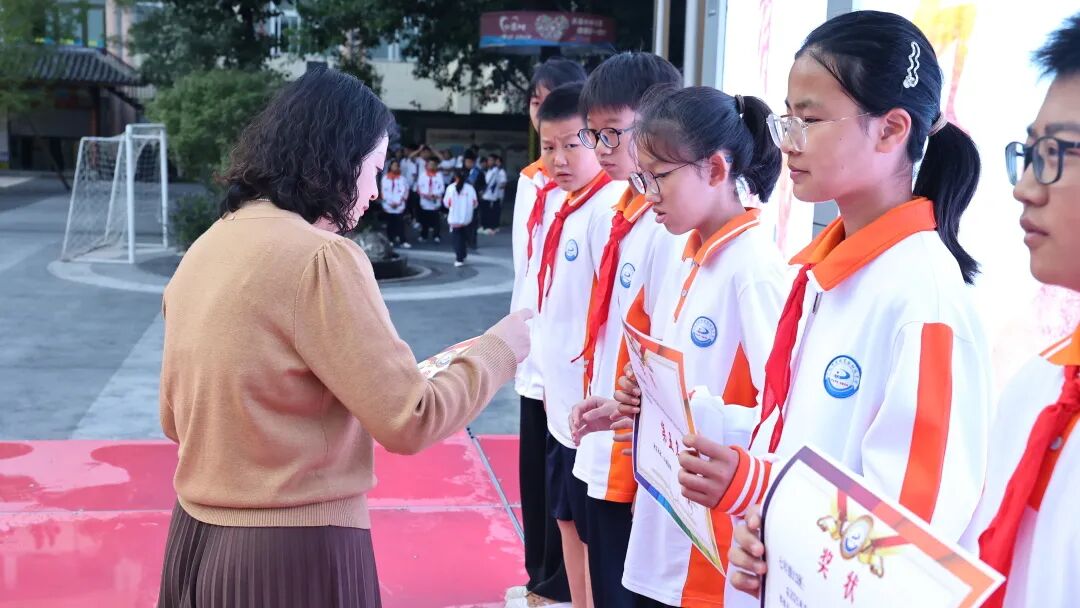 随着最后一项接力赛的结束,本届田径运动会圆满完成所有赛事。闭幕式上,裁判长宣布了各项目获奖名单及团体总分排名,校领导为获奖运动员和班级颁发奖状和奖品。当奖牌挂在胸前,掌声响彻校园,运动员们的脸上洋溢着自豪的笑容——这不仅是荣誉的象征,更是对他们拼搏精神的肯定。