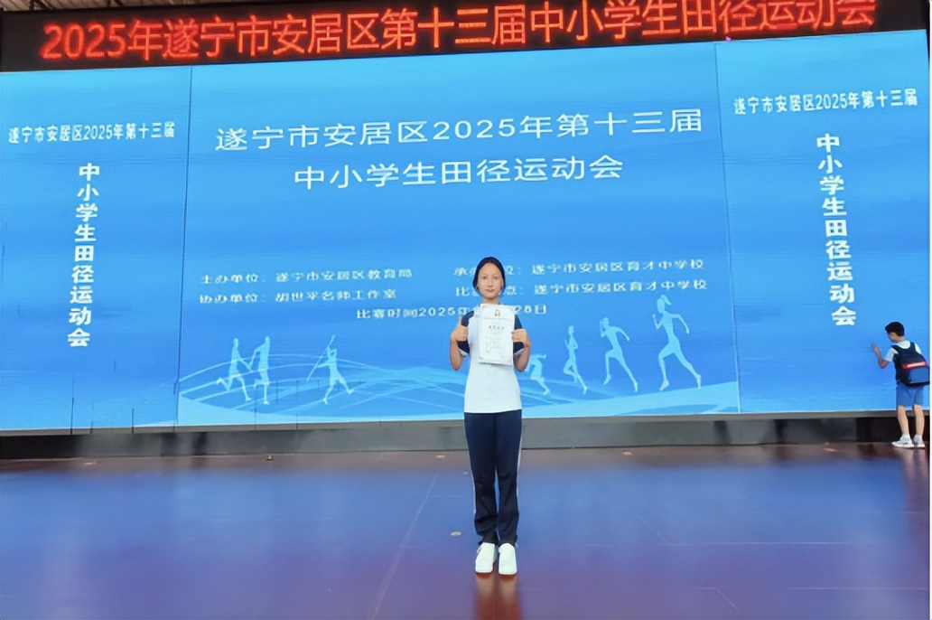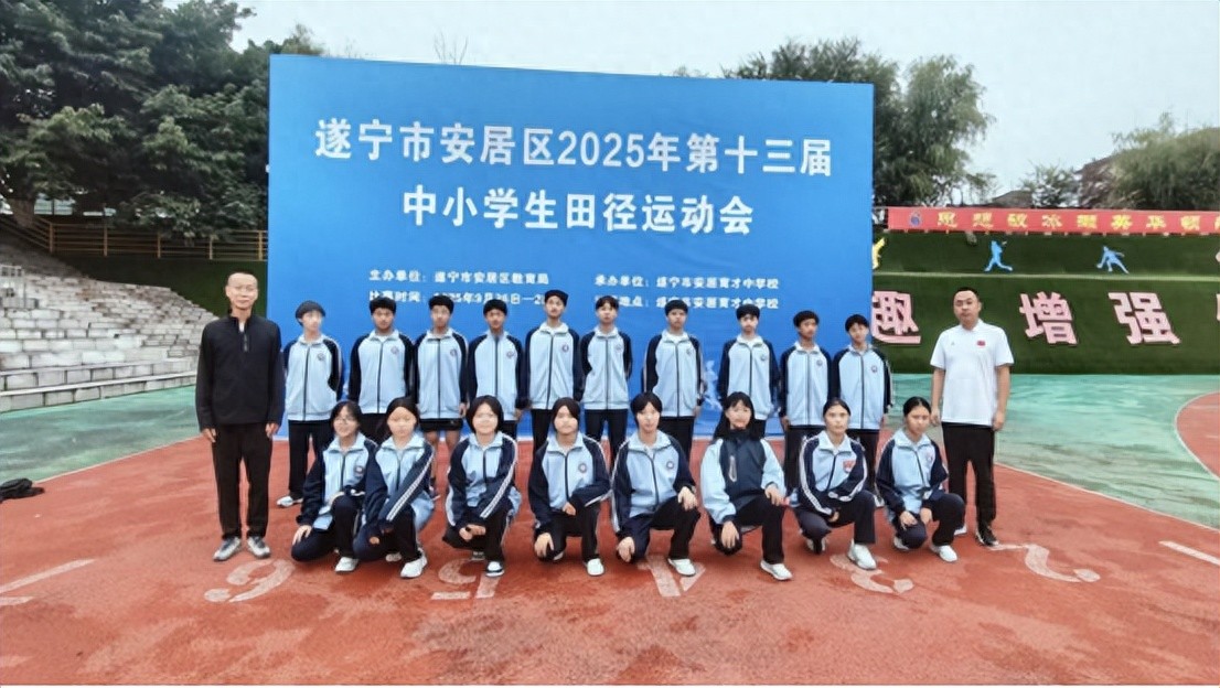 今朝赛场捷报传,明日学子再登攀。此次区田径运动会的优异成绩,既是安居一中体育教育工作的生动成果,也点燃了全体师生的拼搏热情与集体荣誉感。未来,安居一中将持续完善体育教学与训练体系,为学子搭建更多展现自我、追逐梦想的平台,助力更多学子在体育赛场上突破自我、书写新辉煌!