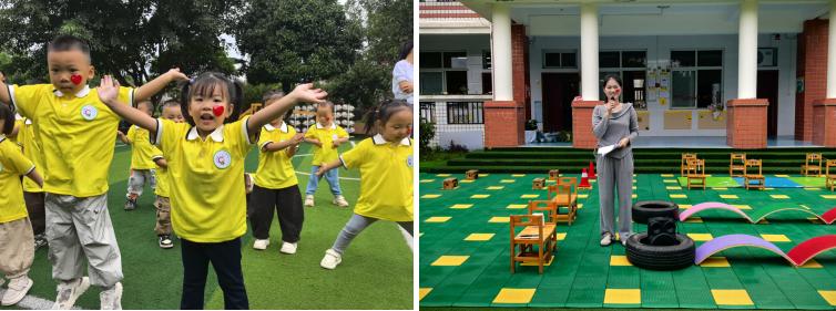 高县罗场镇幼儿园小班全体幼儿在操场开展了红色游戏活动,共设置5个游戏项目,每班轮流参与,全体教师组织。首先我们开始做热身运动,接着老师讲解玩法和规则并进行示范。