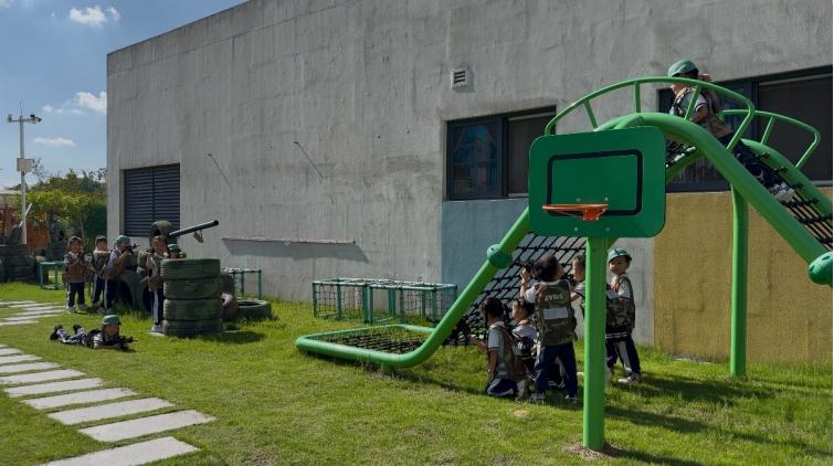 南溪区福临幼儿园大班以“红色传承与家国想象”为主题,设计更具深度的实践活动。大一班在户外创设“红军过草地”情景,幼儿模拟红军战士穿越“草地”(绿色地垫)、躲避“障碍”,在游戏中体会革命先辈的艰辛;大二班举办《王二小》故事会,教师通过道具演示与角色对话,让幼儿感受小英雄的勇敢,萌发“向英雄学习”的情感;大三班开展“家国场景搭建赛”,幼儿分组用积木搭建天安门、长城、火箭等标志性元素,在协作中展现对“祖国”的多元想象;大四班发起“巧手绘长卷”活动,10米长卷上,幼儿用画笔描绘熊猫、故宫、高铁等元素,共同完成“我心中的祖国”画作,将爱国情怀融入斑斓色彩。