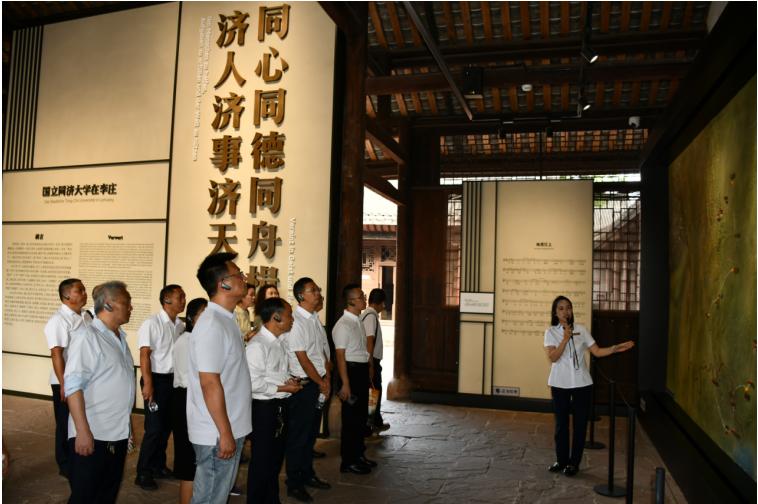 走进同济大学生物系旧址教室,时光仿佛在此倒流。党员们静坐其间,沉浸式感受当年师生授课求学的场景,“同心同德同舟楫,济人济世济天下”的同济校训,与“书生何以报国,唯有笔杆变枪杆”的家国豪情在此交融;李庄人民在民族危难时发出的“同大迁川,李庄欢迎,一切需要,地方供给”的承诺,更让大家深刻体会到军民同心、共赴国难的担当。李庄的一砖一瓦、一屋一树,都在无声诉说着这座古镇在文化抗战中的辉煌历程与卓越贡献。参观途中,宜宾市一曼小学校党员同志们或追问历史细节、或驻足静思缅怀、或由衷赞叹先辈风骨,研学氛围浓厚而庄重。