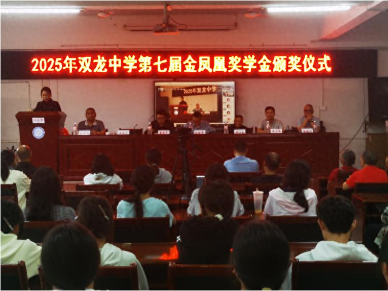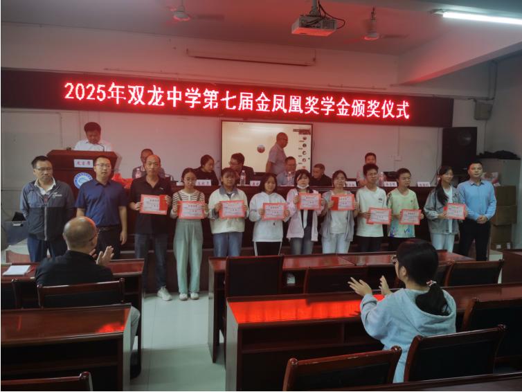 2025年9月30日,宜宾市叙州区双龙学校举行了第七届“金凤凰”奖学金颁奖典礼。廖锌铭等21名同学获金凤凰奖学金,魏飞霞等17名同学获金凤凰励学金,2025届05班教师团队获金凤凰育才奖。